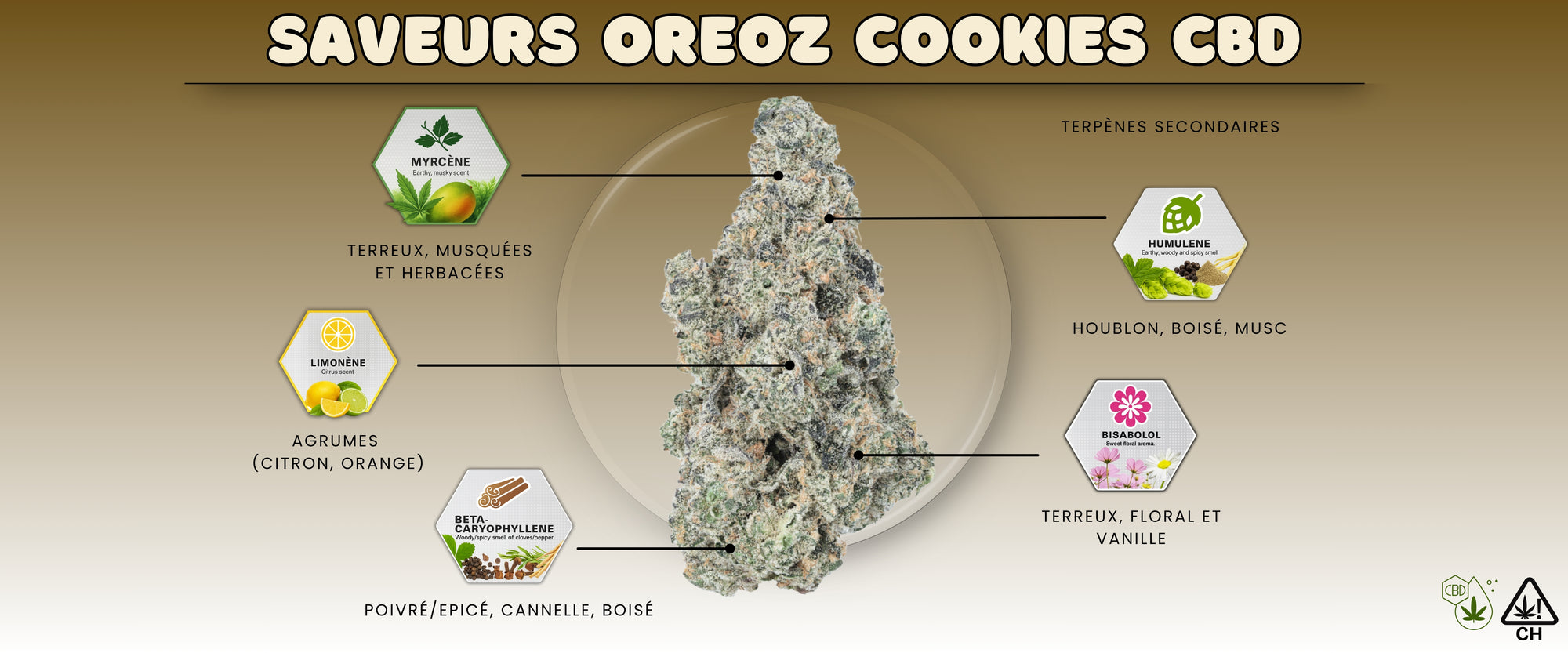 La richesse de la OREOZ COOKIES INDOOR CBD repose sur une composition terpénique exceptionnelle :